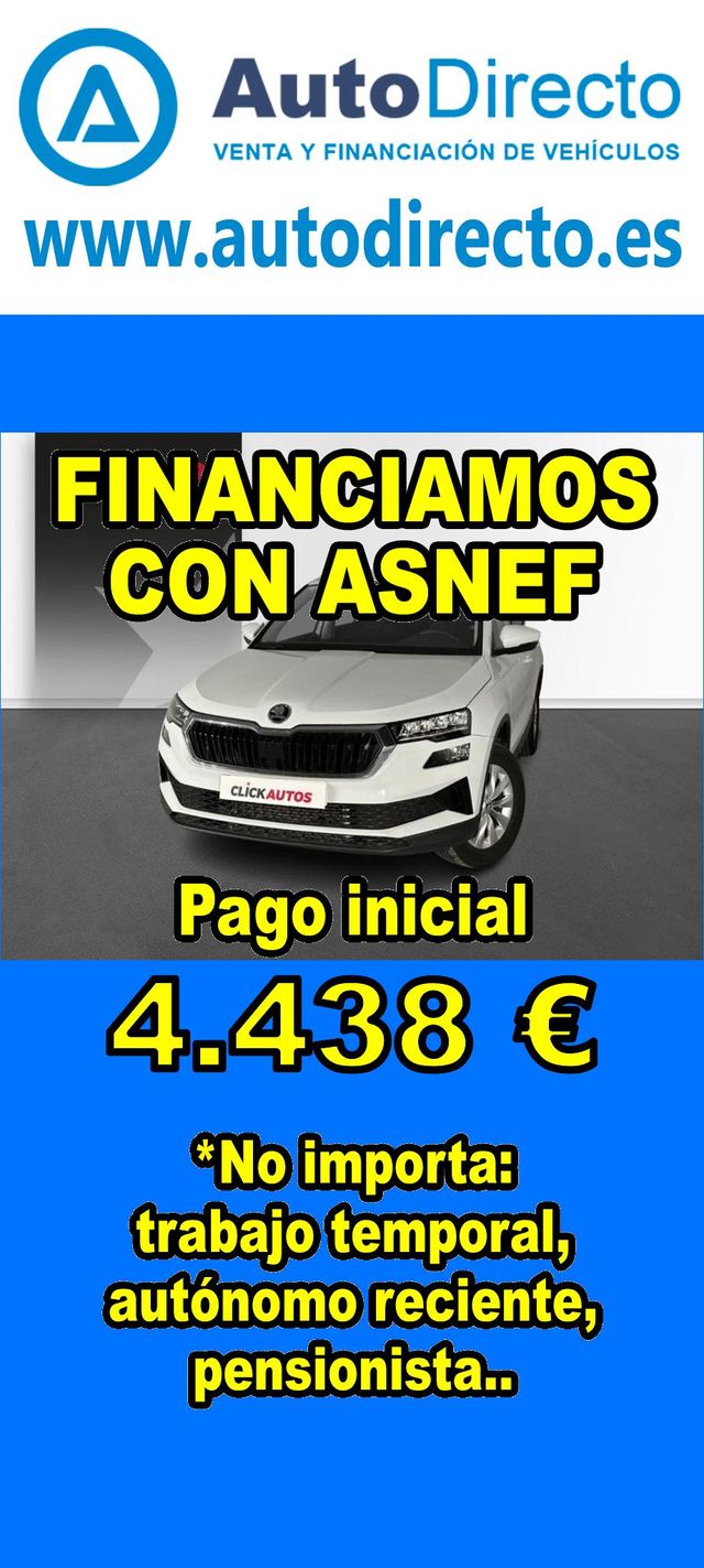 Detalles del producto¿No consigues financiación? ¡Tenemos la solución! *************************************************************************** RENT CREDIT: Aprobamos más del 90% de las operaciones. No importa ASNEF o RAI, impagos pendientes, ser autónomo o empresa reciente, ser pensionista. Imprescindible pago inicial del 20%. Ejemplo de operación: SKODA KAROQ 1.5 TSI 150CV AMBITION. Ref. W959524MFT - Precio vehículo financiado: 22190 €. - Pago inicial de 4438 €. - Cuota mes desde 462 €. - Impuesto de circulación y garantía (mínimo 1 año) incluidos. *************************************************************************** ✅ Más de 3.000 COCHES Y FURGONETAS EN STOCK. ✅ HASTA 2 AÑOS DE GARANTIA. ✅ Kilómetros certificados. ✅ 17 concesionarios repartidos en toda España. ♻️ Aceptamos tu coche como parte del pago. *************************************************************************** IMPORTANTE: -. Este anuncio, no es vinculante, puede contener errores. SE MUESTRAN A TÍTULO INFORMATIVO Y NO CONTRACTUAL. -. Consultar disponibilidad del vehículo y datos exactos: fecha de matriculación, importes, etc,... *************************************************************************** Te ofrecemos distintas opciones: financiación, renting, alquiler con opción a compra, rent credit. En nuestro stock disponible encontraras: 3008 , qashqai , corolla , rav4 , sandero , Duster , yaris , 2008 , Tucson , Ibiza , 208 , Sportage , a3 , c4 , Formentor , q3 , yaris cross , 500 , c3 , arona , zs , x1 , kona , corsa , clase a , león , 308 , serie 1 , golf , focus , captur , a1 , tiguan , i20 , t roc , stonic , xc40 , civic , q5 , serie 3 , glb , 5008 , ateca , clio , kuga , c hr , i30 , arkana , juke , a4 , x3 , cx 5 , xc60 , kamiq , taigo , Mustang , x6 , polo , ceed , karoq , x2 , Astra , niro , cx 30 , a5 , cooper , megane , moka , fiesta , hs , q2 , clase c , serie 3 , renegade , picanto.