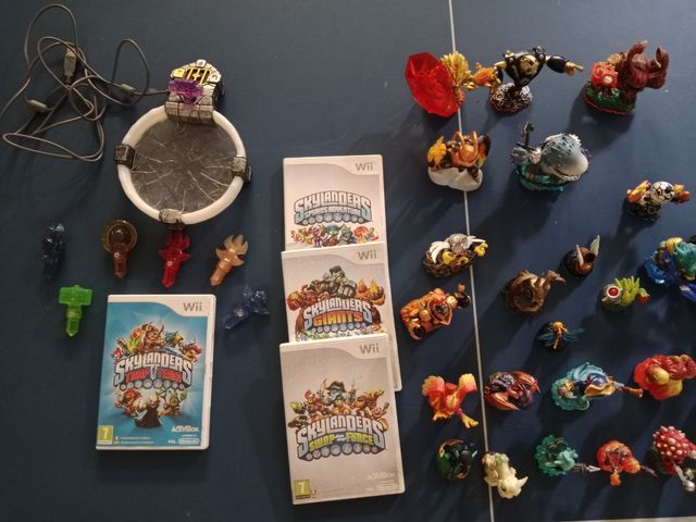 Detalles del productoVendo colección de videojuegos Skylanders para Wii. Incluye los juegos Skylanders Spyro's Adventure, Skylanders Giants y Skylanders Swap Force. También se incluye el portal y varios personajes. Los juegos están en buen estado y los personajes presentan un aspecto estupendo.