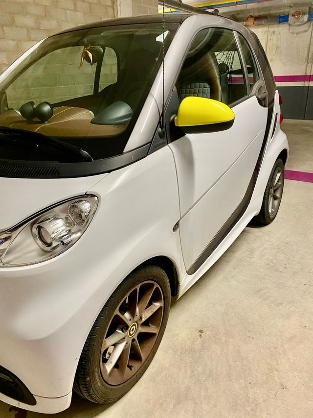 Detalles del productoSmart Fortwo BoConcept con luces diurnas LEDS, llantas de aleación, espejos retrovisores y otros detalles en amarillo Light Lemon, célula de seguridad en antracita brillante y pintura exterior en blanco cristal mate.