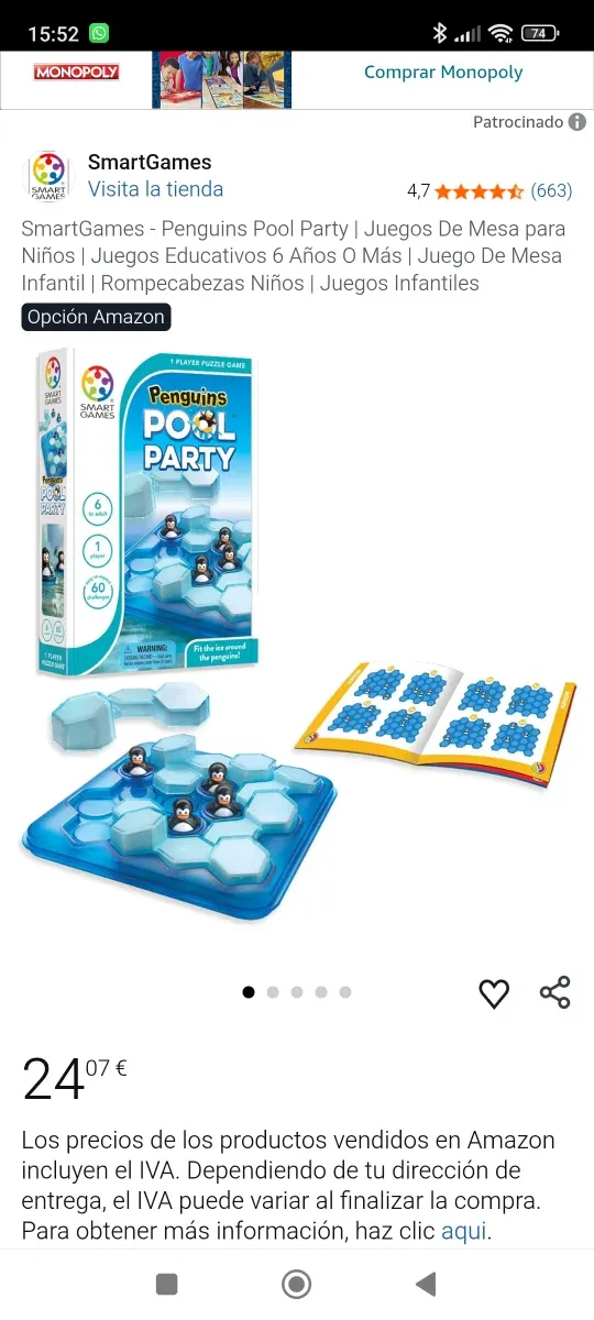 Juego de mesa SmartGames Penguins Pool Party. - Juego de lógica y rompecabezas. - Para 1 jugador. - Incluye tablero, piezas y libro de desafíos.