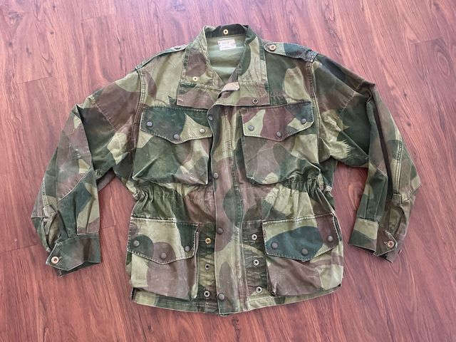 Detalles del productosmock RAKA paracaidistas belgas en camuflaje moon and balls año 56 talla 4 como una L cremalleras en buen estado y automaticos (falta uno en el frontal)