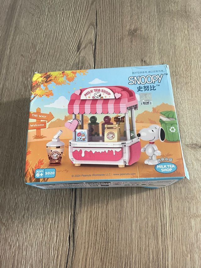 Set de bloques de construcción de colección Snoopy, modelo tienda de batidos