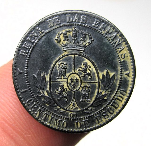 Soberbios 1 Centimo escudo Isabel II 1868 Segovia
