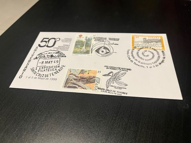 Sobre de la Primera Exposición Filatélica y Primer Matasellos Conmemorativos de Canarias, 8 de mayo 1949.