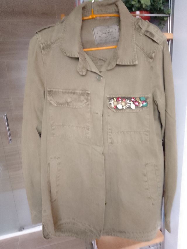 Sobrecamisa Zara verde militar con pedrería