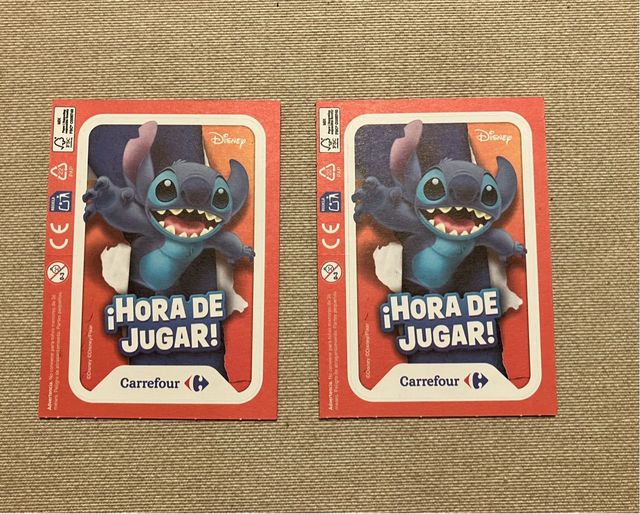 Dos sobres de cromos de la colección de Stitch ¡Hora de Jugar! de Disney. 2 sobres: 1 euro.