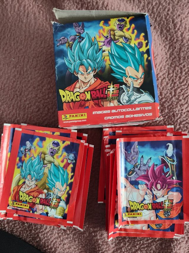 Caja completa con 50 sobres sin abrir + otros 26 de la primera colección de cromos de dragón ball super.