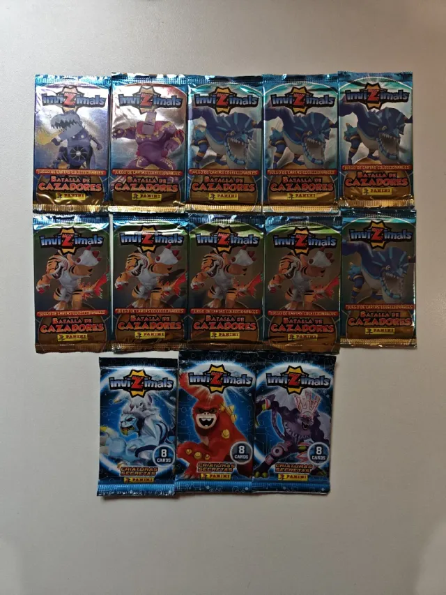 Lote de sobres cerrados de Invizimals, Batalla de Cazadores y Criaturas Secretas. - Contiene 12 sobres. - Cada sobre incluye 8 cartas. - Producto de Panini.