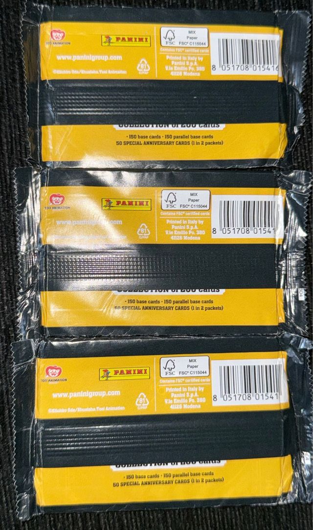 Detalles del productoLote de sobres de cromos de Panini de One Piece. Cada sobre contiene 10 cartas.