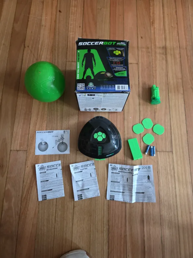 Detalles del productoJuego de fútbol inteligente Soccerbot con balón y accesorios.