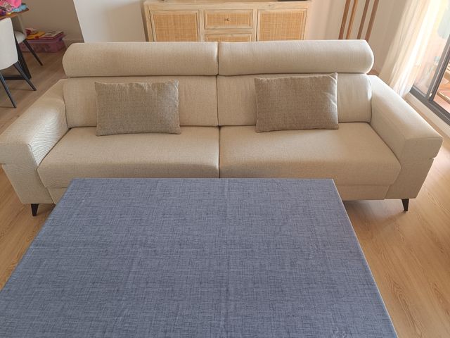 Sofá 2 plazas grandes beige deslizante y dos puff