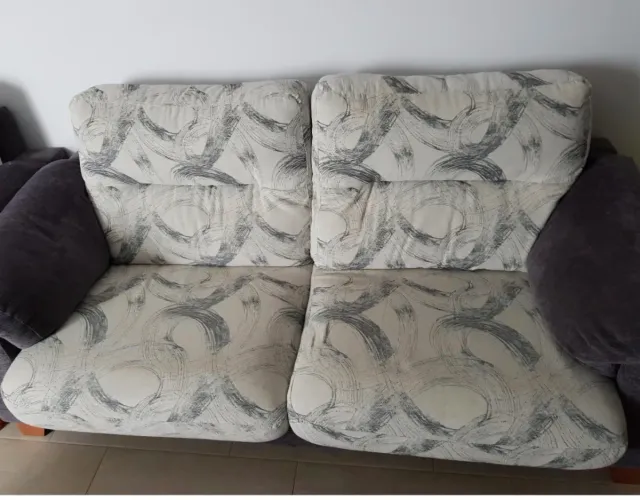 Sofá 3+2 plazas tela blanco y gris