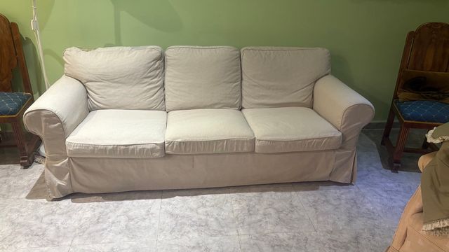 Sofá beige desfundable de tela
