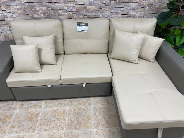 Sofá Cama Chaise Longue Beige + 2 Puff Nuevo