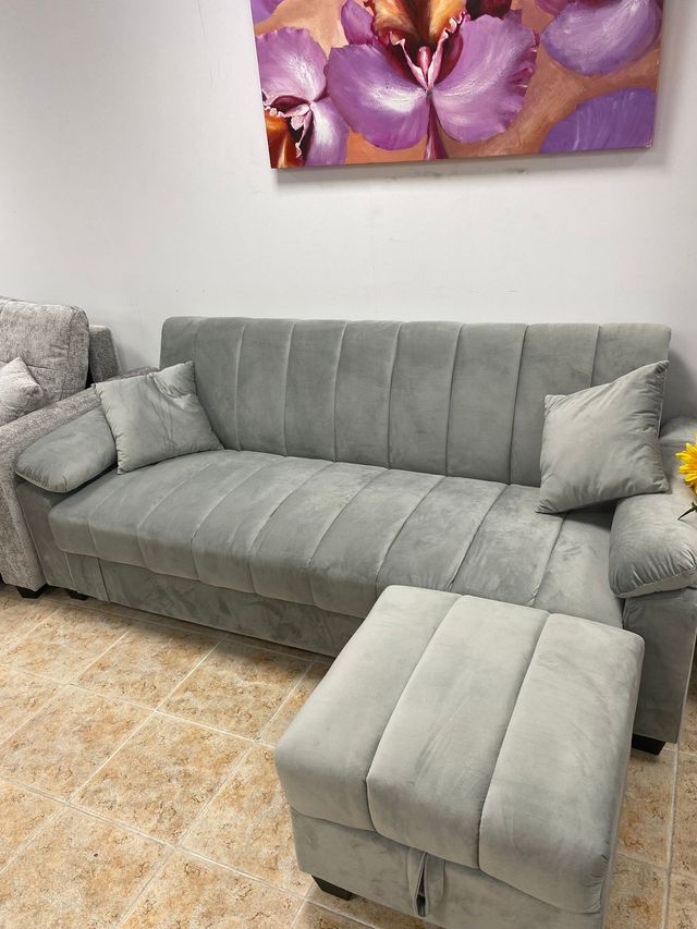 SOFA CAMA CLICK CLACK + PUFF NUEVO GRIS