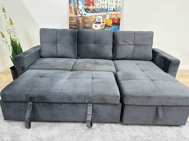 Sofá Cama Terciopelo Gris 215cm