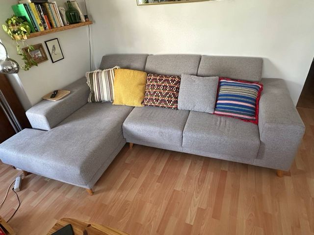 Sofá chaise longue 3 plazas - Gris estilo nórdico