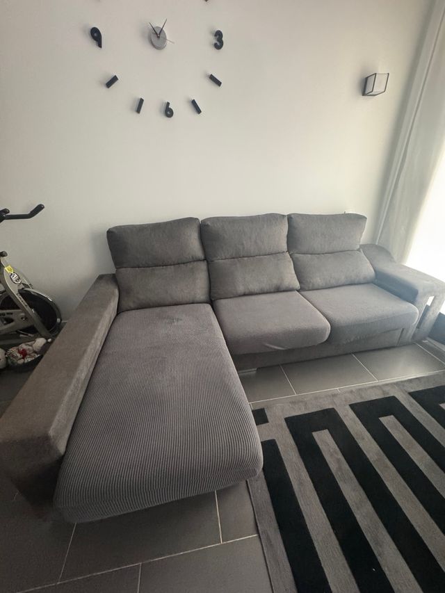 Sofá Chaise Longue Gris 3 Plazas, con dos fundas.