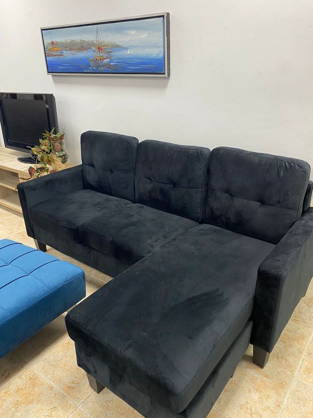 SOFA NUEVO CHAISE LONGUE NEGRO + PUFF MOVIBLE