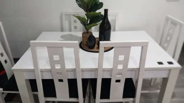 Conjunto de sofá chaise longue, mesa extensible con seis sillas y mesa de centro elevable - Sofá chaise longue. - Mesa extensible. - Seis sillas.