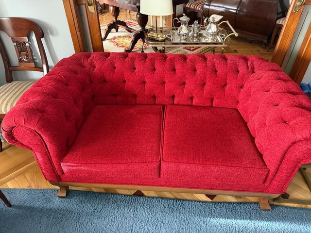 Sofá Chesterfield Rojo Tela y Madera