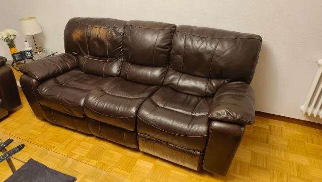 Sofá de 3 plazas y 2 plazas de piel marrón