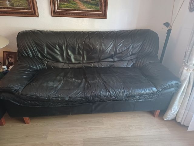 Detalles del productoDe piel. La parte del asiento tiene la piel rota. necesita reparación, el resto está bien conservado. Medidas del producto