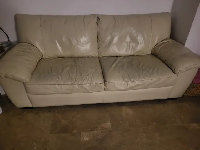 Sofá de Piel Beige 3 Plazas Ikea