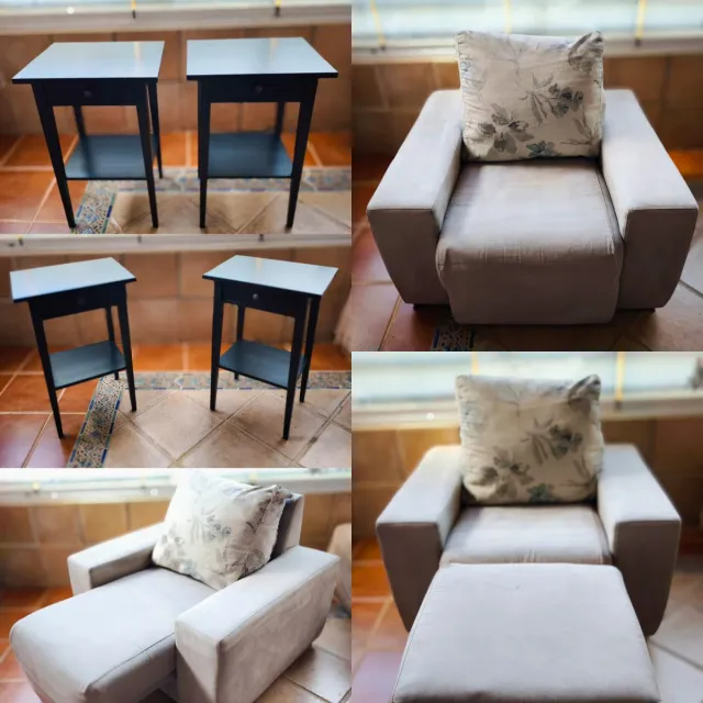 Sofá extensible + 2 mesitas