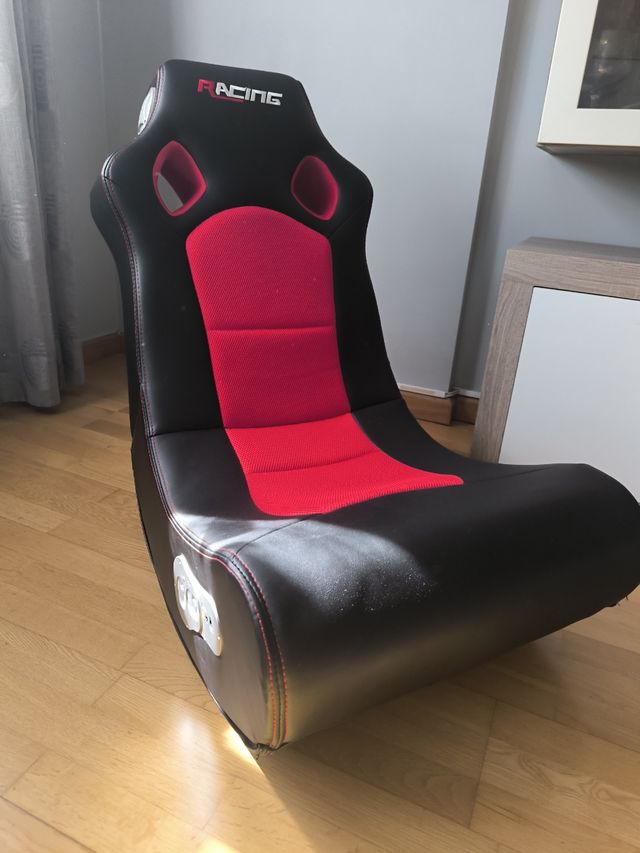 Sofá gamer de la marca RACING con sistema de sonido integrado. - Diseño ergonómico. - Tapicería en negro y rojo. - Altavoces incorporados.