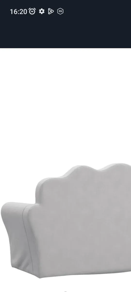 Sofá diseñado para niños, con un acabado suave y cómodo. - Diseño con respaldo ondulado. - Tapicería de tela gris claro.