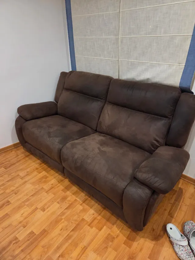 Sofá marrón desplegable en ante