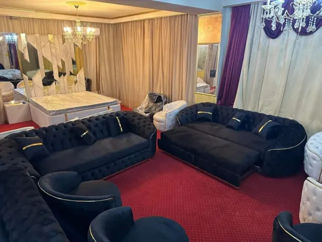 Sofá Negro Terciopelo con Detalles Dorados