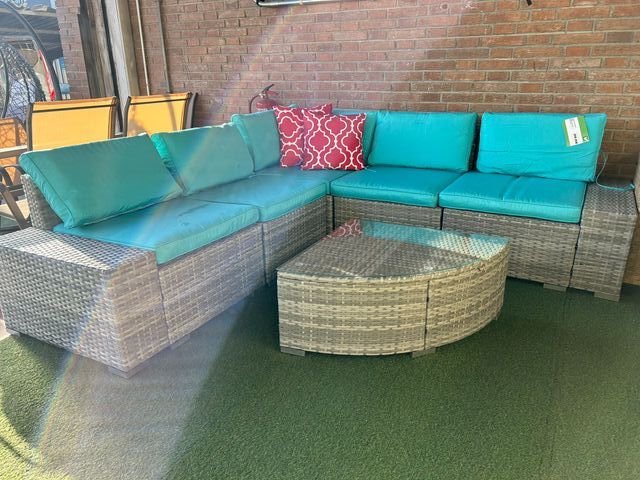 Sofá rinconera terraza ratán y cojines