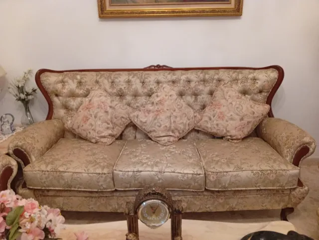 Sofá y butacones Luis XV beige y rosa
