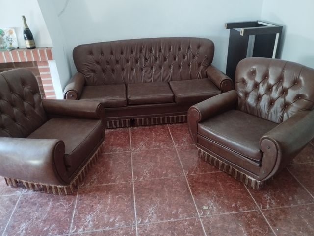 Sofá y sillones antiguos de piel
