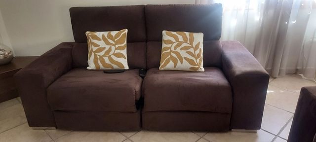 DOS UNIDADES DE SOFAS DE TRES PLAZAS MARRON. Relax