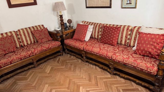 Como nuevo · Dorado y Marrón · Tela y Madera