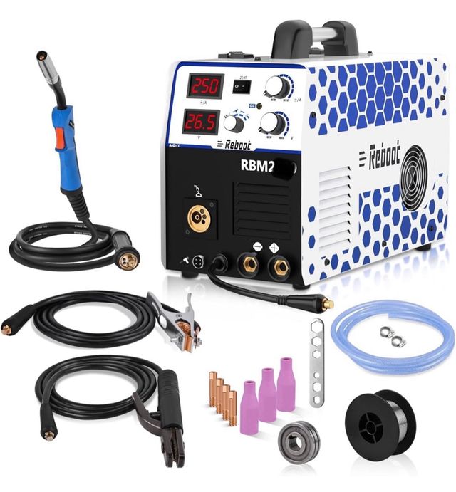 Detalles del productoMáquina de soldadura multifuncional 5 en 1: RBM2100 es una máquina de soldadura multifuncional, adecuada para MMA, Lift TIG, MIG fundente, MIG gas, Pistola De Carrete soldadura de aluminio y otros modos, compatible con alambre con núcleo de 0,8/0,9/1,0 mm sólido, Alambre con núcleo de fundente de 0,8/0,9/1,0 mm, alambre de aluminio de 1,0/1,2 mm (la máquina de soldar no incluye soplete de soldadura de carrete, soplete de soldadura de arco de argón)