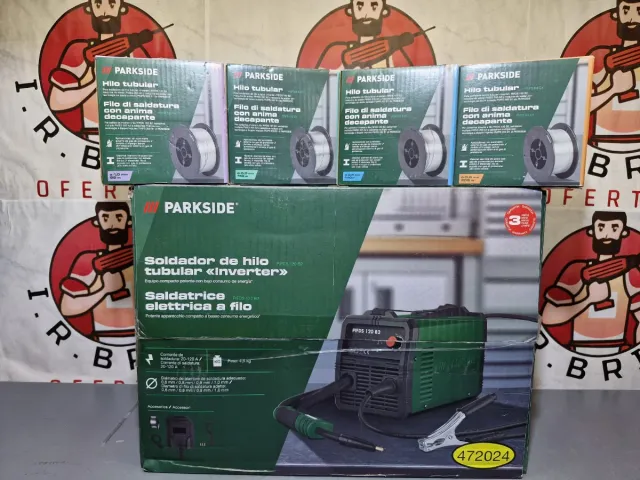 Detalles del productoSoldador de hilo tubular con tecnología inverter de la marca Parkside. Equipo compacto y de bajo consumo energético.