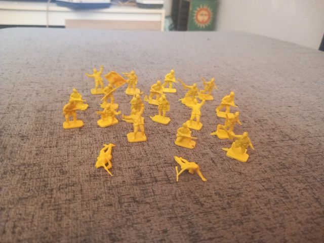 Se venden 20 figuras de soldados Montaplex de los años 80. Son de color amarillo y están en buen estado. - Figuras de plástico. - 20 unidades en total. - De los años 80.