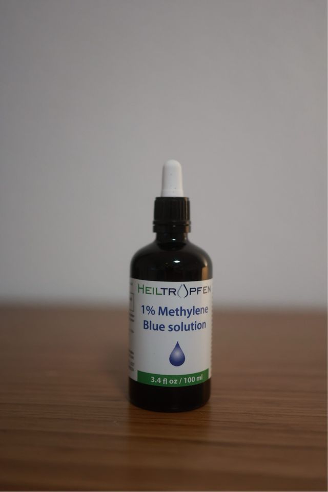 Detalles del productoSe vende solución de azul de metileno al 1%. Es una botella de 100 ml (3.4 fl oz) de la marca Heil Tropfen. - Solución de azul de metileno al 1%. - Botella de 100 ml. - Con cuentagotas.