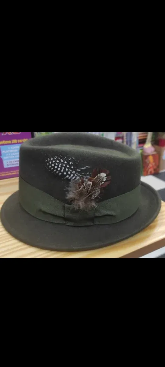 Sombrero de Lana Verde Oscuro con Plumas