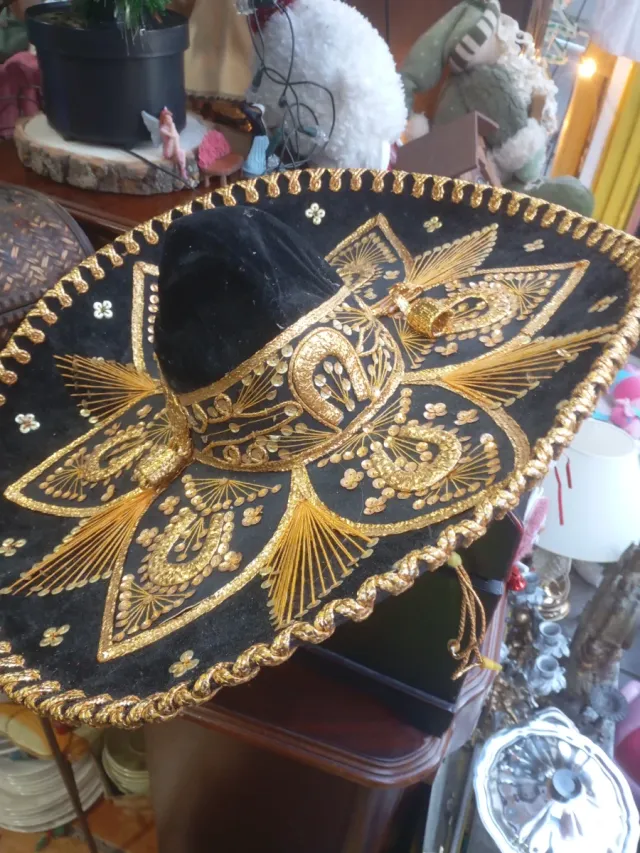 Sombrero Mexicano Negro Dorado Bordado