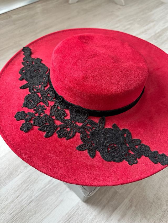 Sombrero rojo con encaje negro