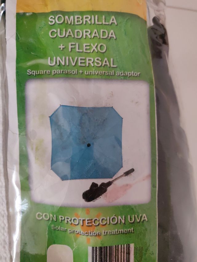 Detalles del productoSombrilla cuadrada protección UVA, con flexo universal para adaptar a cualquier carro de bebé.