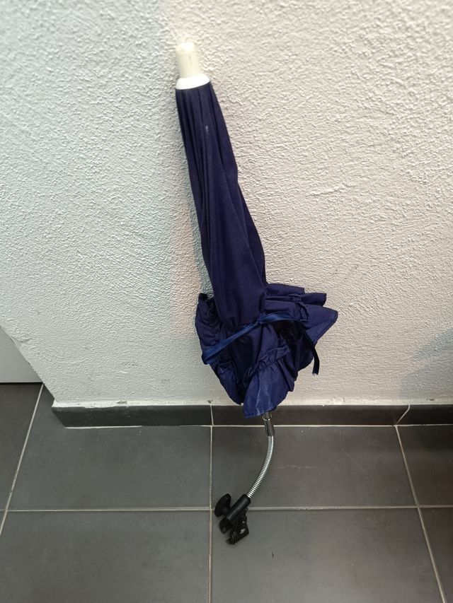Sombrilla o parasol de carro o silla de paseo bebé en color azul marino.