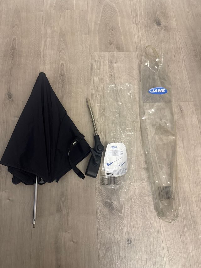 Sombrilla de la marca Jane en color negro. Incluye soporte. - Color negro. - Incluye soporte. - Marca Jane.