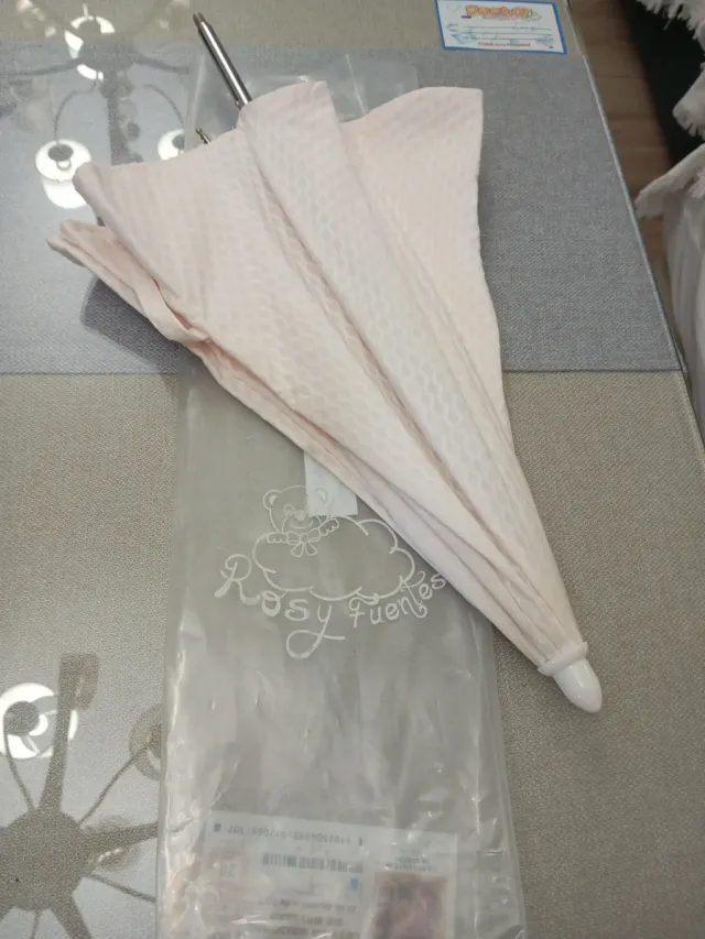 Sombrilla de color rosa claro, ideal para cochecitos de bebé. Presenta un diseño con un tejido texturizado. - Color: Rosa claro - Tejido texturizado