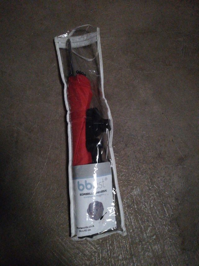 Sombrilla universal para silla de paseo, ideal para proteger del sol. - Color rojo. - Incluye funda. - Protección UVA.